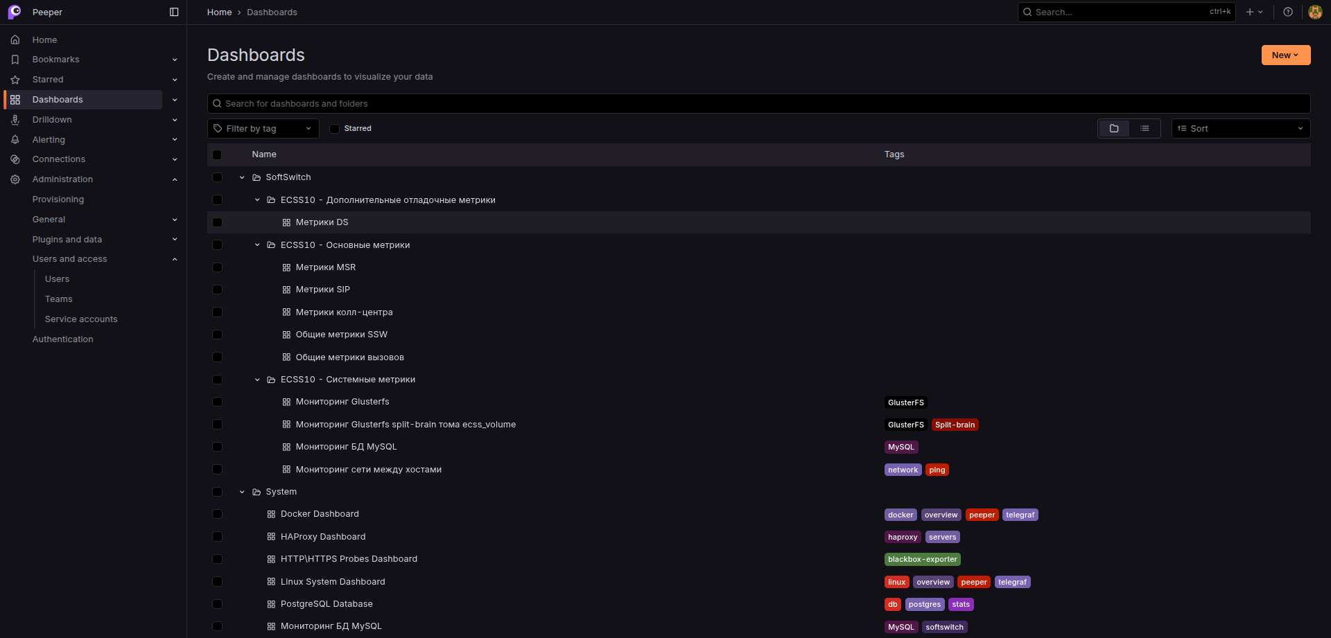 После установки дашборды успешно выгрузились в Grafana: