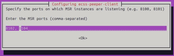 Если требуется добавить еще экземпляры MSR (на портах отличных от 8100) , тогда выполнить команду sudo dpgk-reconfigure ecss-peeper-client, указав через запятую новые порты: