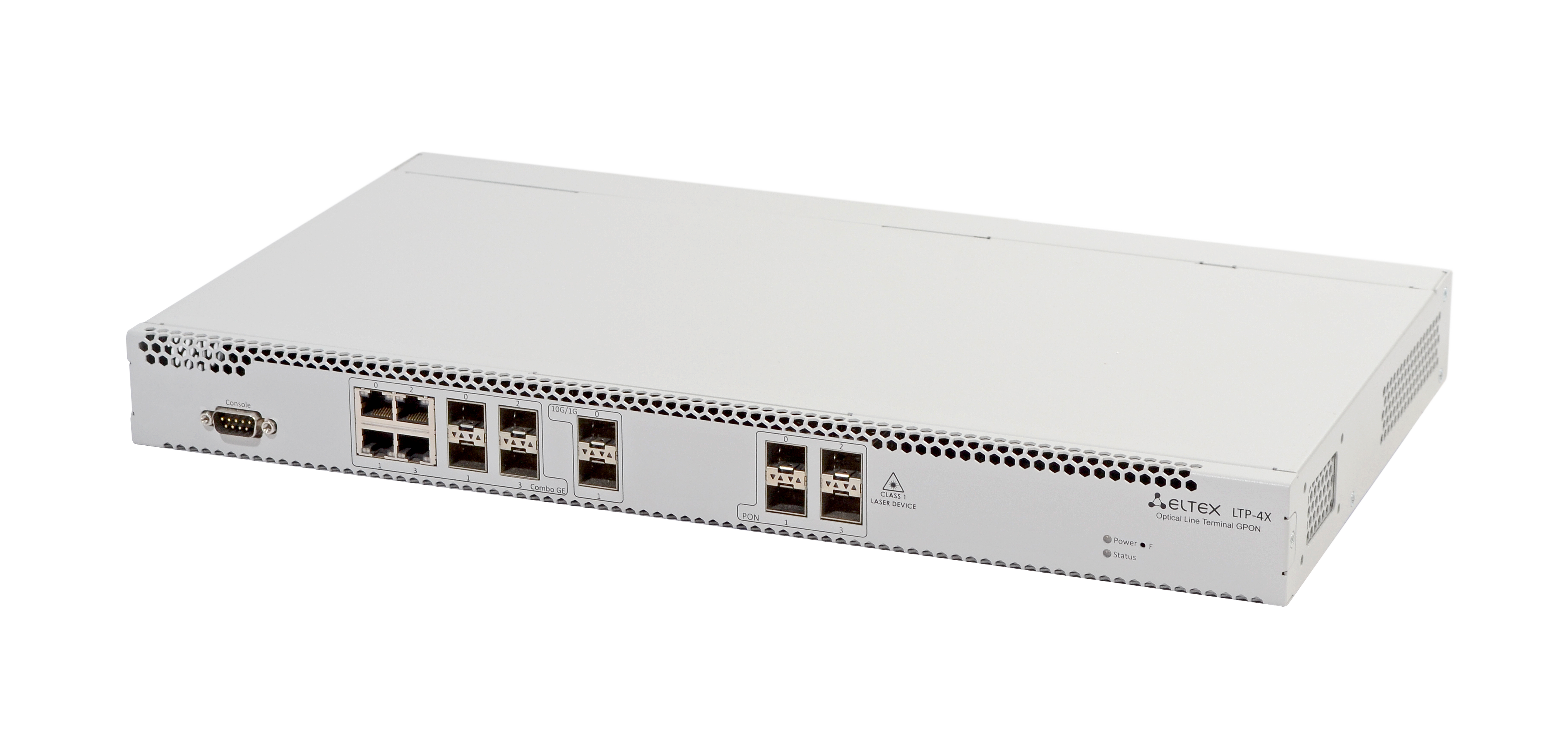 OLT серии LTP – станционные терминалы, предназначенные для связи с вышестоящим оборудованием и организации широкополосного доступа по пассивным оптическим сетям. Серия представлена терминалами LTP-4X и LTP-8X с внутренним Ethernet-коммутатором с функцией RSSI, на четыре и восемь портов GPON соответственно. Связь с сетями Ethernet реализуется посредством Gigabit uplink и 10G Base-X интерфейсов, для выхода в оптические сети служат интерфейсы GPON. Каждый интерфейс PON позволяет подключить до 128 абонентских оптических терминалов по одному волокну, динамическое распределение полосы DBA (dynamic bandwidth allocation).