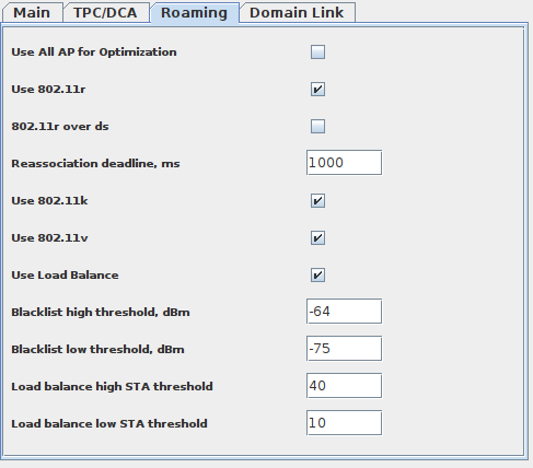 Роуминг настраивается только между интерфейсами в рамках одного диапазона(2.4ГГц или 5ГГц). Роуминг между разными диапазонами 2.4ГГц и 5ГГц не настраивается.