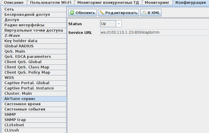 set rrm rrm-service-url  ws://<IP адрес AirTune>:8099/apb/rrm