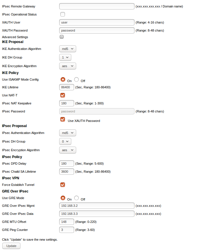 Профиль OTT. В данном профиле содержится полный набор настроек IPsec, в соответствии с которыми точка доступа и ESR будут создавать IPsec-туннели. Возможные настройки в профиле ОТТ приведены в