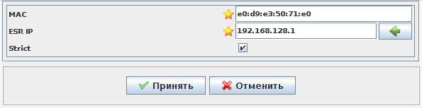 - Выбрать нужный ESR IP и при необходимости указать признак "Strict".