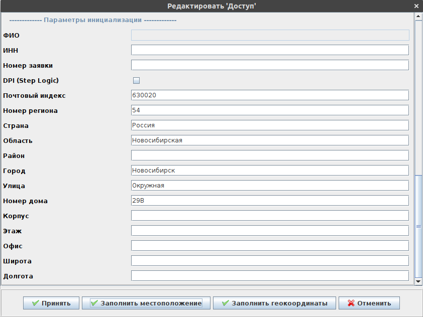 Заполнение геокоординат – данный функционал позволяет заполнить поля географических координат, по данным введенным в ручном режиме, без использования "Заполнение местоположения".