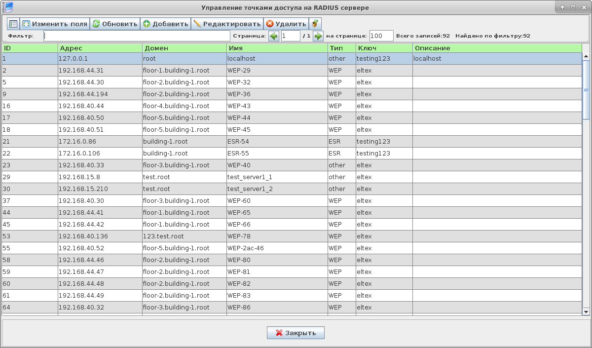 Ключ – пароль, используемый базой RADIUS для авторизации точки доступа;