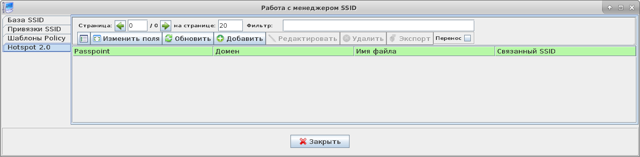 Для создания шаблона конфигурации Hotspot 2.0 нажмите кнопку "Добавить".