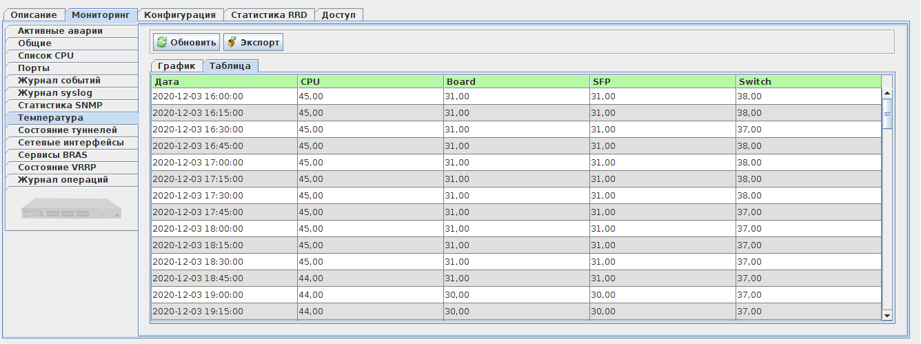 Меню содержит статистику аварийных и нештатных событий для всех устройств системы и самого сервера EMS.
