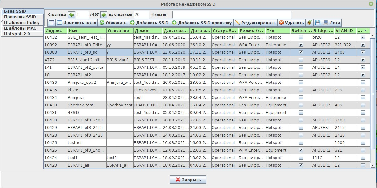 В разделе производится управление перечнем правил инициализации точек доступа.