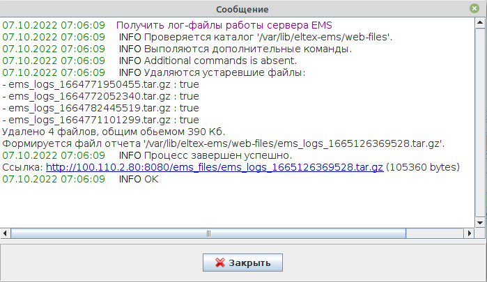 Просмотр текущей версии программы. В диалоге отобразится дата и версия сборки консоли, а также дата и версия сборки EMS-сервера (если он доступен).