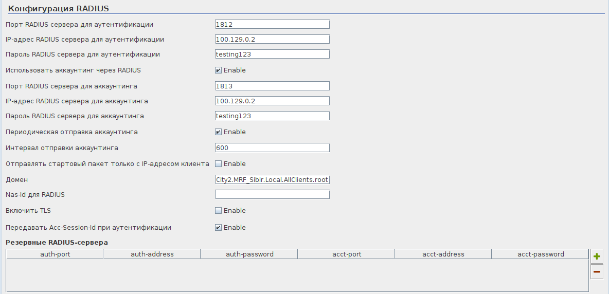 Добавить ТД в RADIUS – флаг автоматического добавления ТД в базу RADIUS при инициализации;