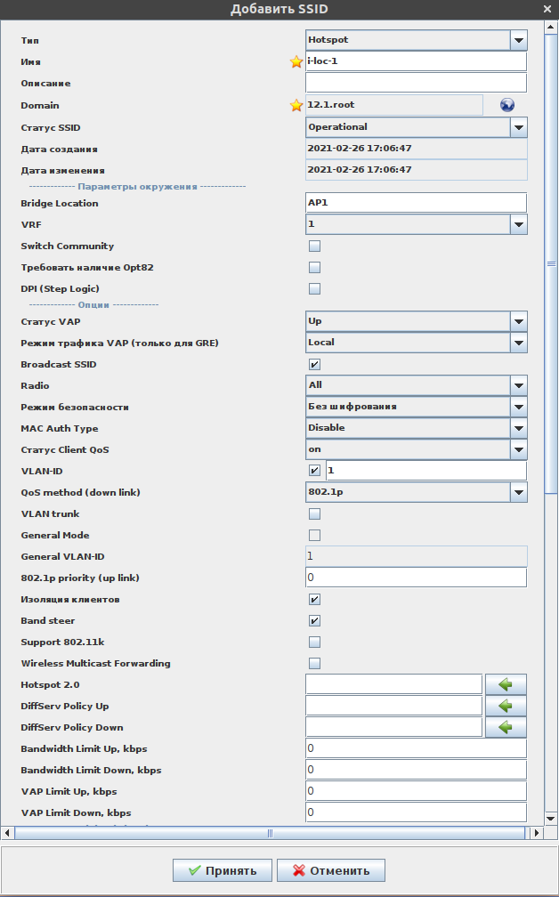 Так же выполняем привязку SSID к нужному домену и исправление привязок. Если используется динамическое конфигурирование data-туннелей на ESR по команде от SoftWLC - то дата туннели для SSID, использующих local switching создаваться не будут.