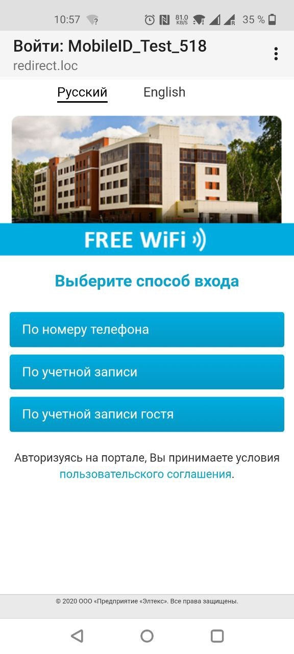 2. Captive Portal в браузере абонента отображает веб-страницу авторизации.