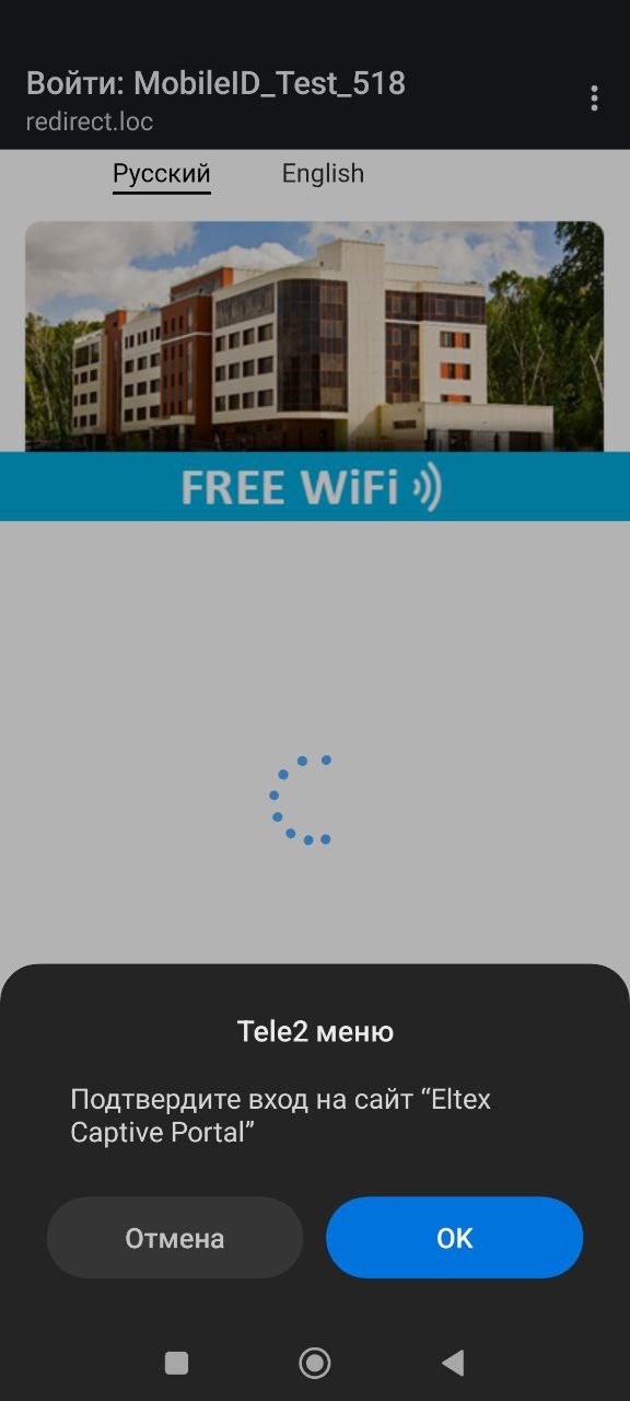 2. Перейти на страницу Портала. 3. Выбрать авторизацию по номеру телефона. 4. Ввести телефонный номер Теле2 и нажать кнопку "MobileID". 5. Должно появиться системное уведомление о подключении к сети. 6. Нажать "ок" - должен появиться доступ в сеть. 7. Нажать "отмена" либо ничего не нажимать - редирект на выбор способа авторизации. | |