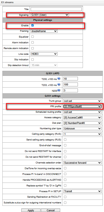 • In the Q.931 Settings section, select a PRI profile from the drop-down list.
