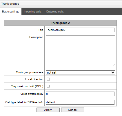 • Select the trunk group for outgoing calls to the PSTN, created in step 4, from the drop-down list.