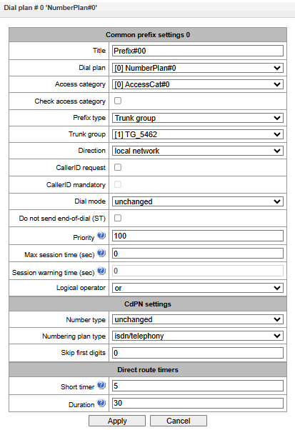 • Create dial plan prefix, by or или через меню Objects → Add an object.