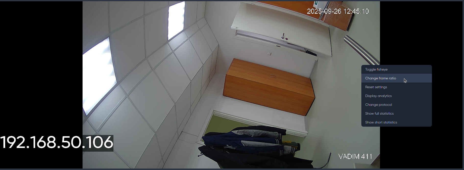 To change the frame ratio on the camera, click the Change frame ratio button in the context menu.