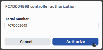 The serial number is automatically substituted, click the Authorize button on the bottom right.