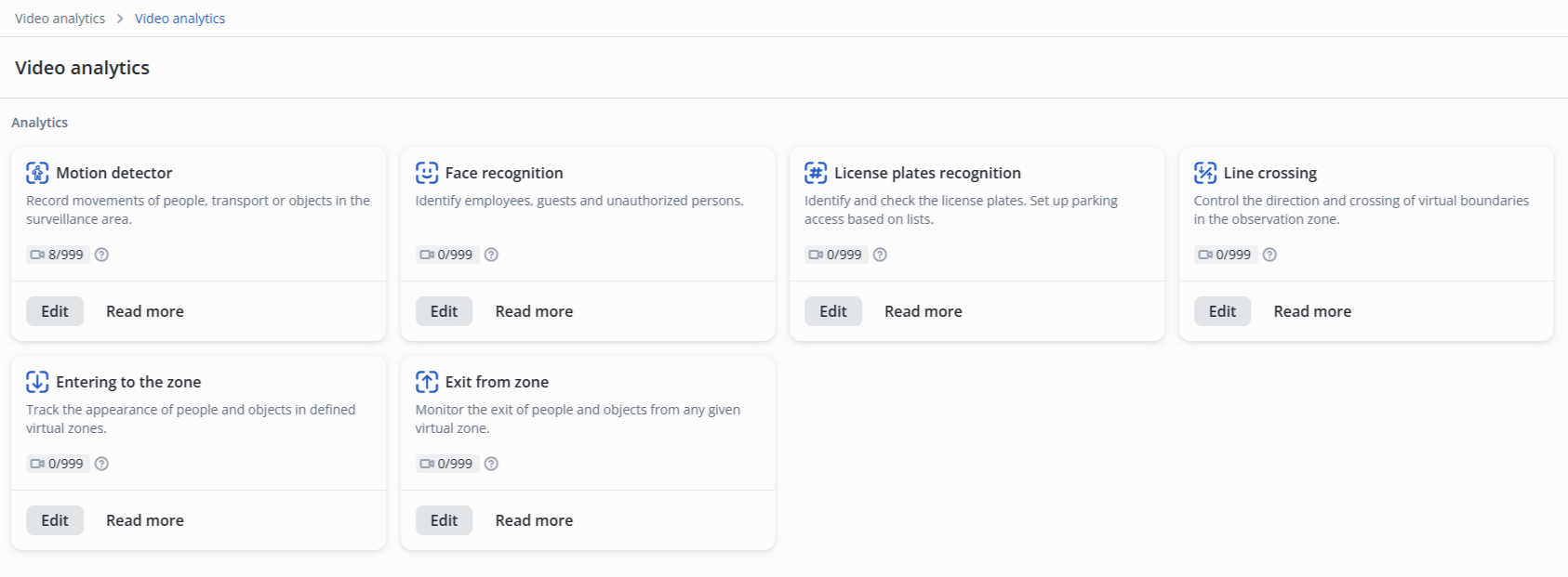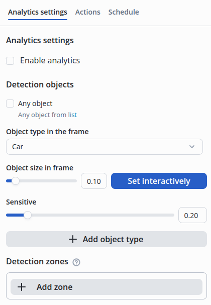 In the camera edit, switch to the Video analytics section.