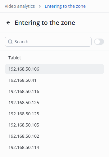 The Entering to the zone model is designed to track the appearance of objects in specified virtual zones. Analytics are triggered when people, vehicles, or cargo enter a protected area and initiate alerts or actions via the PACS.