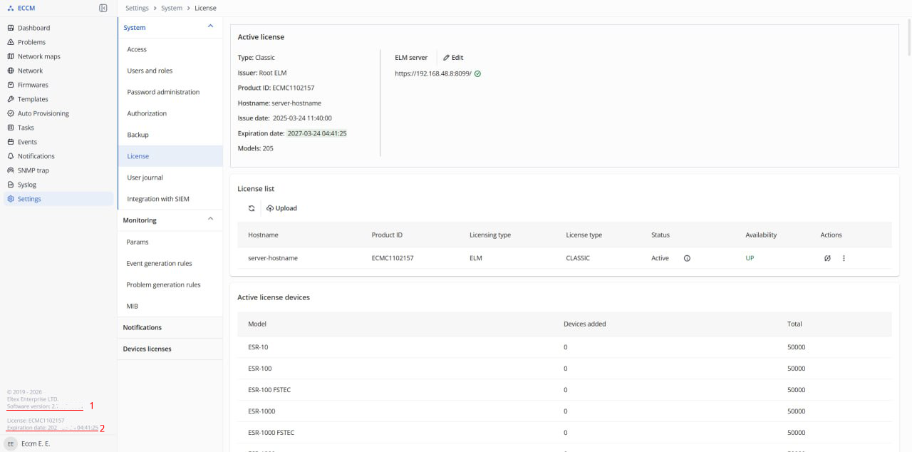 $ECCM_ROOT/eccm/.env(in a line like:ECCM_TAG=2.6). - Check the version information in the lower left corner of the web interface screen of the running ECCM:
