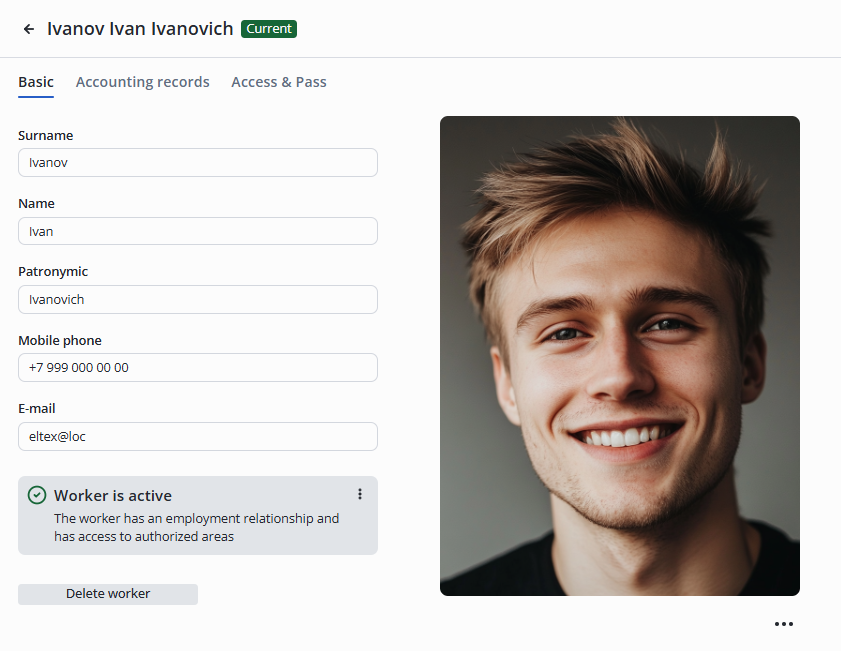 The worker editing card page will open.