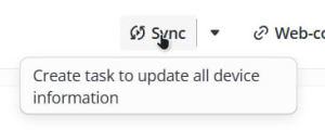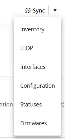 Interface discovery occurs automatically every 5 minutes and is enabled by default. To manually trigger an update, click the icon to the right of the “Sync” button and select “Interfaces” from the list that opens.