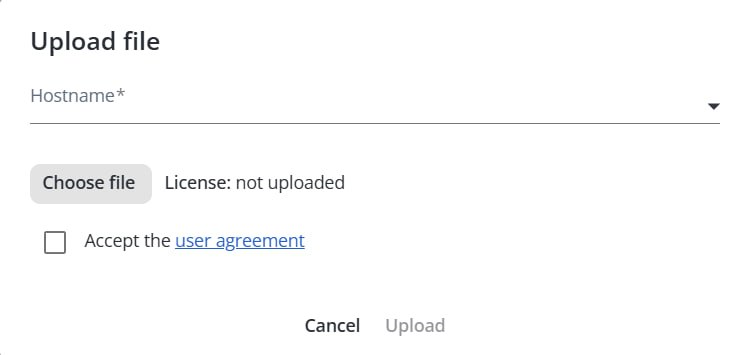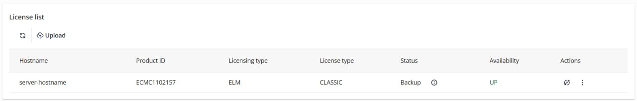 Click the “Upload” button. The uploaded license will appear in the “License list” table: