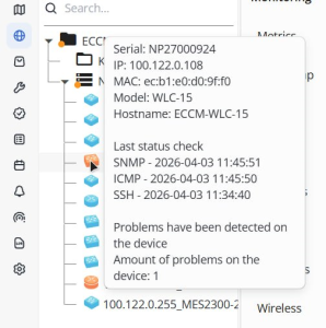 In the example above, the device is not accessible via SNMP, but is accessible via ICMP and SSH.