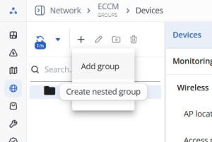 You can create a group in the ECCM root group, an empty group, or a group that contains other groups. You cannot create a new group within a group that contains devices, or within groups of “IP Factory,” “FWBA,” or “Cluster” type.
