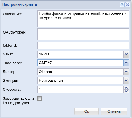 - Завершить, если tts не доступен (Terminate if tts failed) — завершить IVR-скрипт в случае недоступности tts.