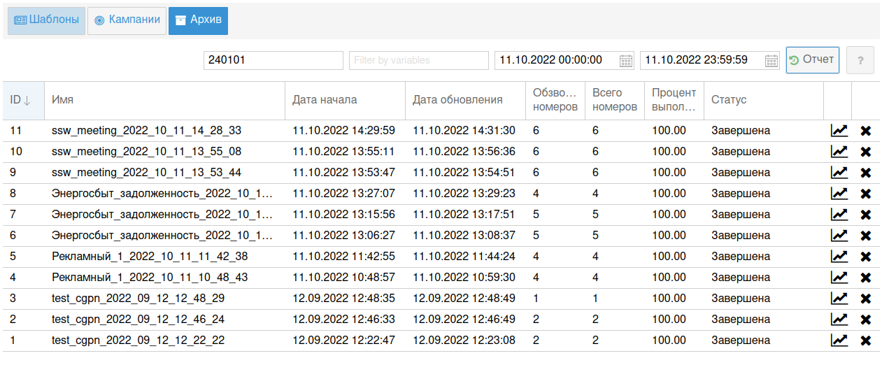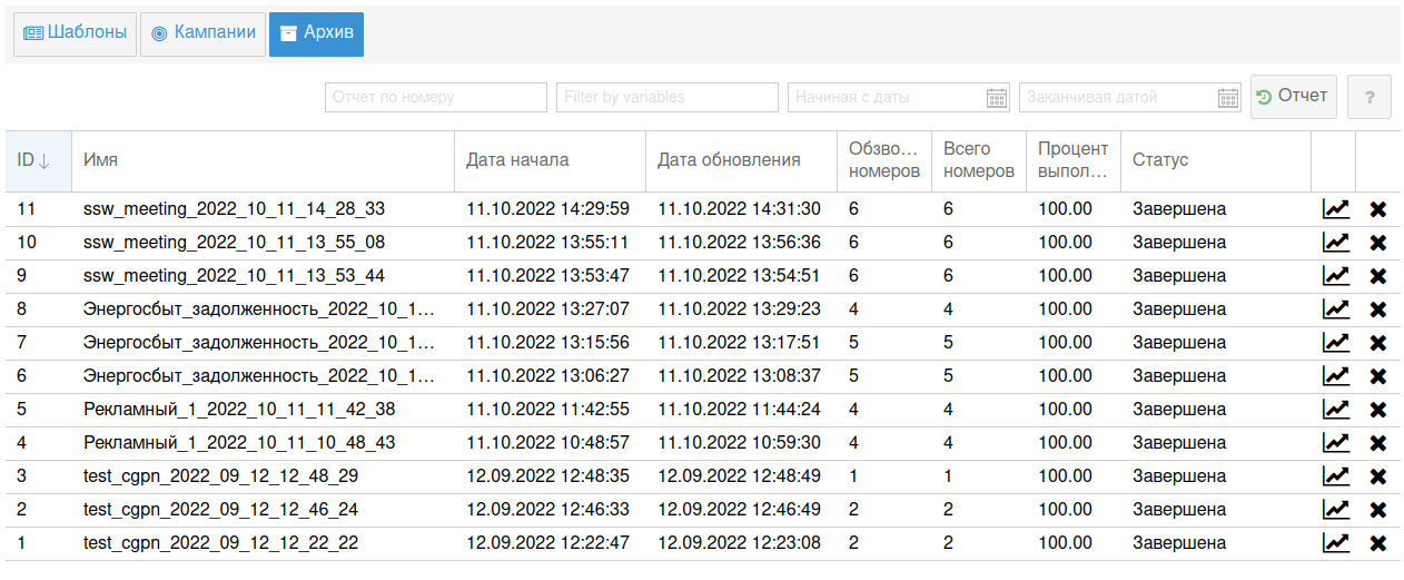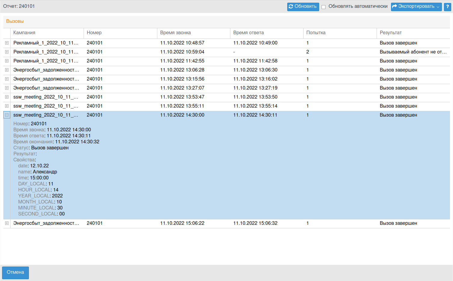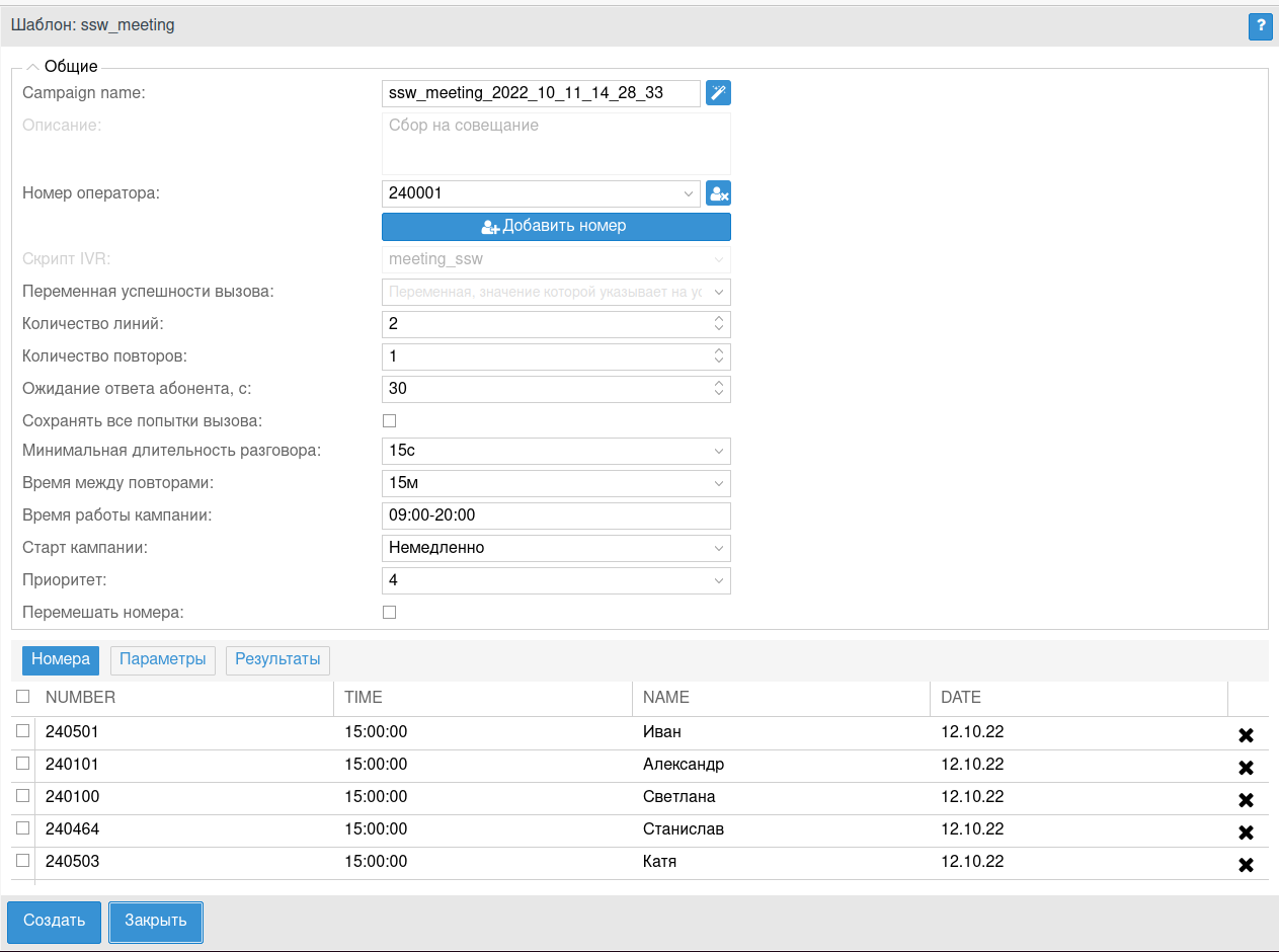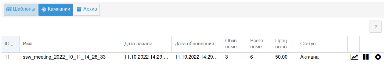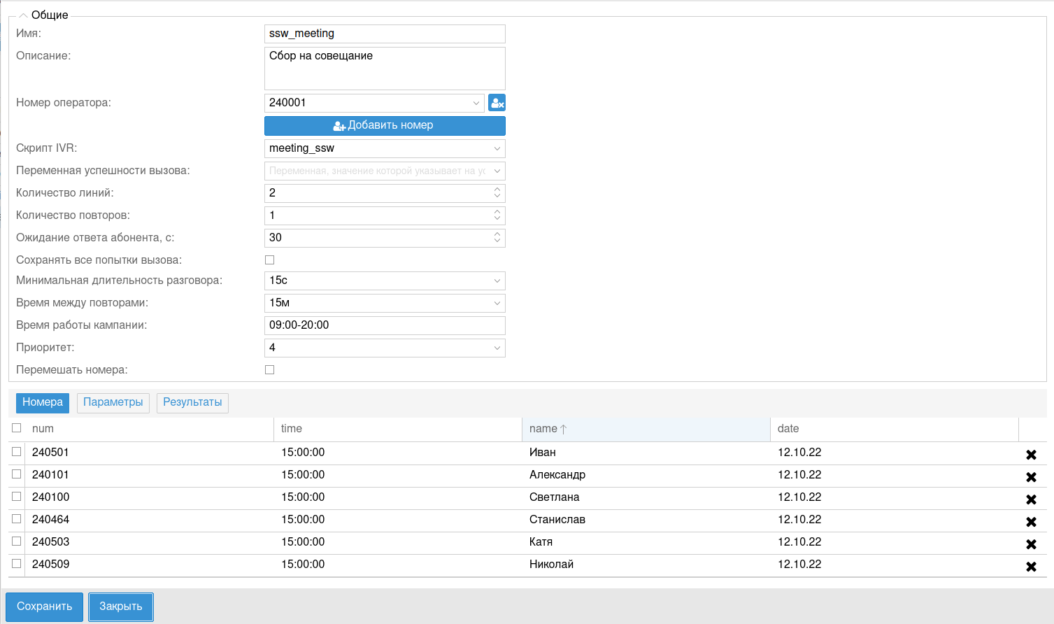 - Запустить кампанию обзвона, если необходимо, изменив требуемые параметры .