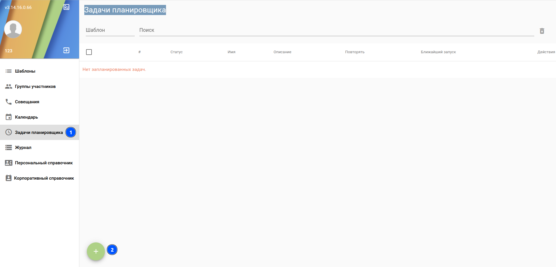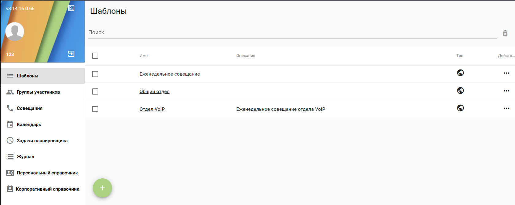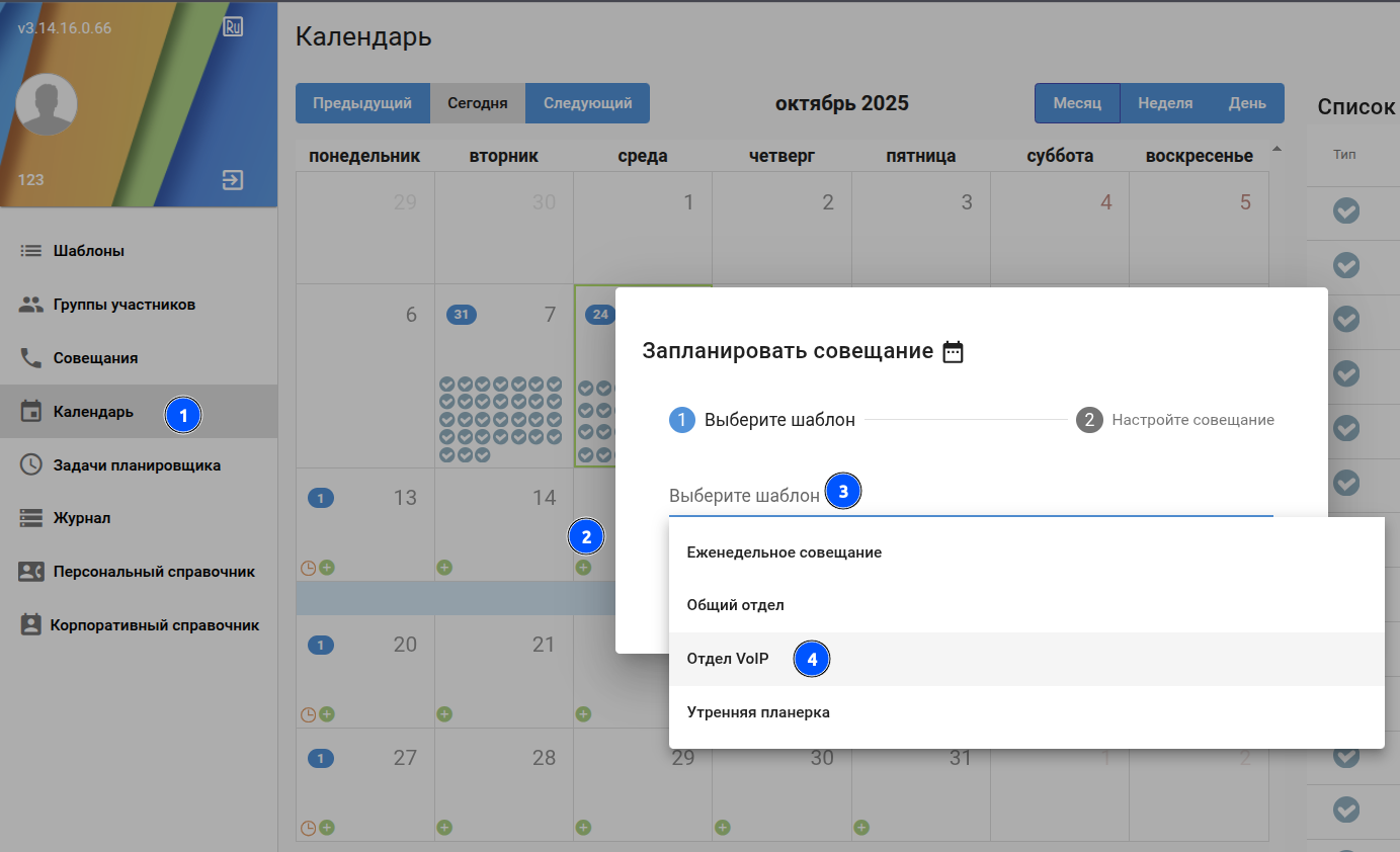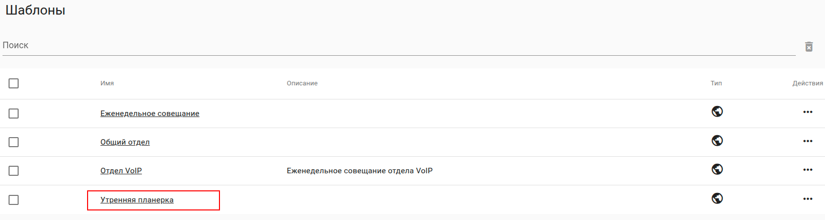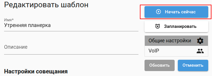 Для создания нового совещания (нового шаблона) нажмите ![]()