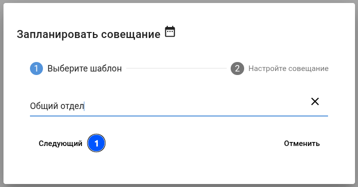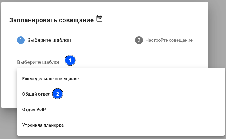 Выбрать шаблон для запланированного совещания: