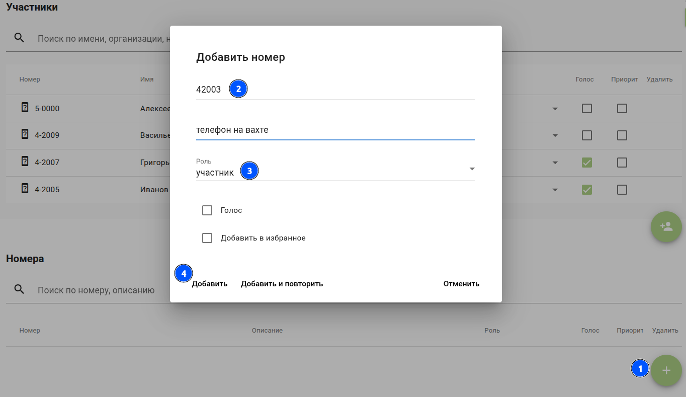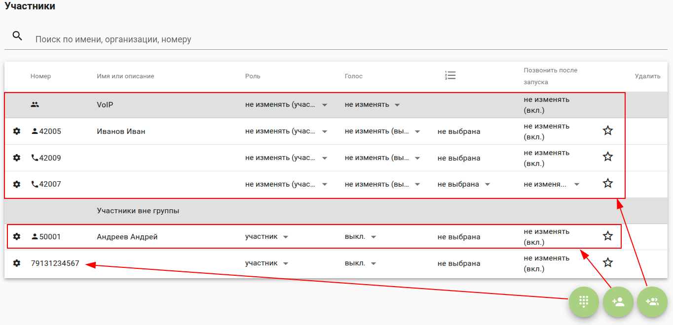 Добавлять участников не указанных в шаблоне, по необходимости, (как из справочника, так и по внешнему номеру) нажав