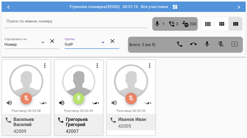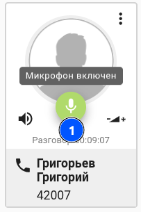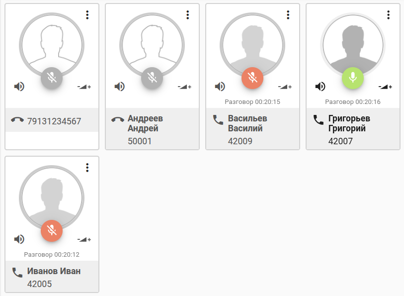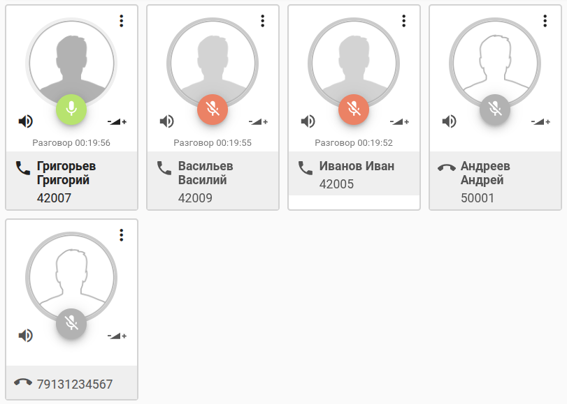 Ведущий совещания имеет возможность регулировать уровень громкости телефона и микрофона для любого участника совещания, включать и отключать микрофон участнику совещания: