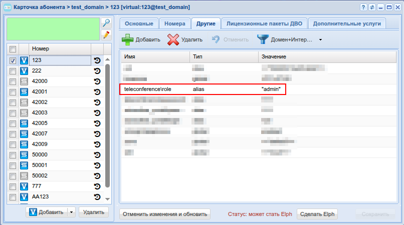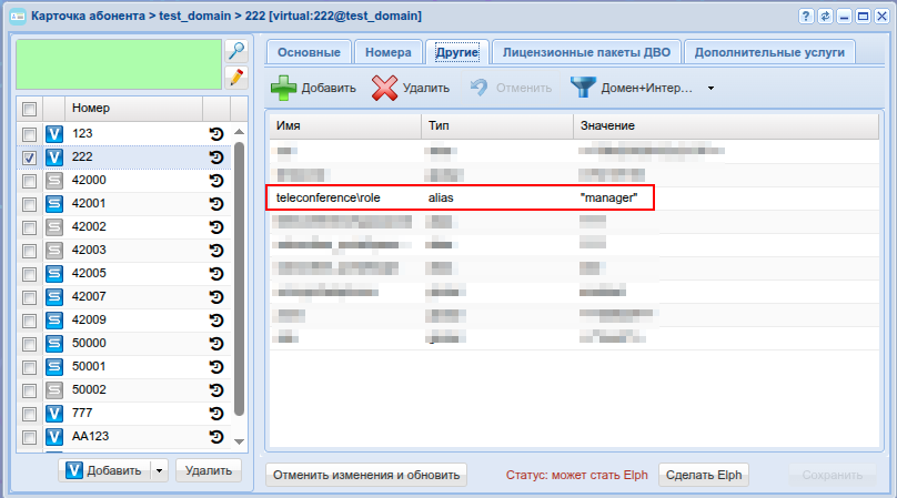 - Или индивидуально по номеру абонента (как внутреннего абонента данного домена, так и внешний номер)