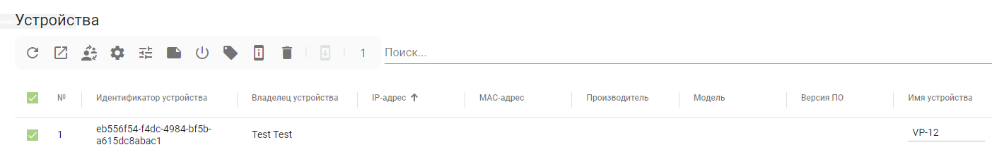 1. Выделите необходимое устройство галочкой в ячейке перед номером строки с устройством.