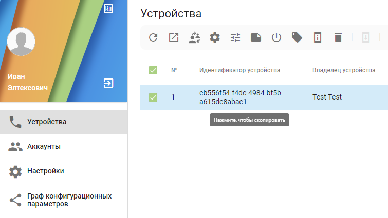 3. В столбце «Идентификатор устройства» нажмите на нужный идентификатор, тем самым скопировав его в буфер обмена.