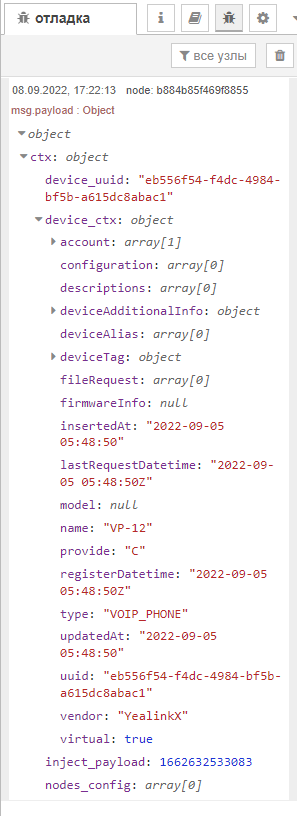 Для настройки узла switch необходимо отобразить контекст на вкладке «Отладка». Для этого: