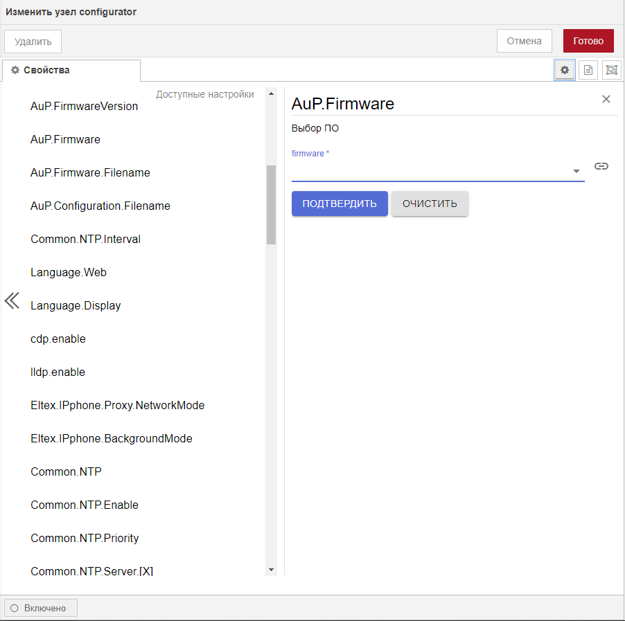 Узел configurator настраивает конкретные модели телефонов. Более подробная настройка описана в следующих разделах.