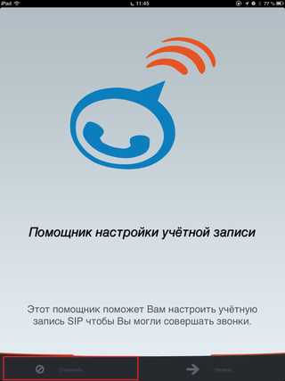 Запустите приложение LinPhone. При открытии помощника настройки учетной записи нажмите кнопку «Отменить», рисунок 12.