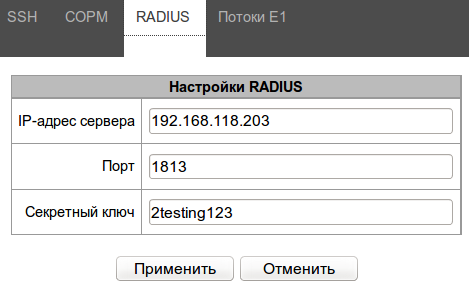 Настройки RADIUS