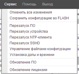 Для сохранения параметров в энергонезависимую память необходимо в меню Сервис выбрать пункт Сохранить конфигурацию во Flash.