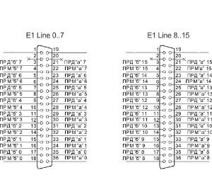 Назначение контактов разъемов RJ-48 для подключения потоков E1 E1 Line 0..15 соответствует спецификации ISO/IЕС 10173 и приведено в таблице 1.