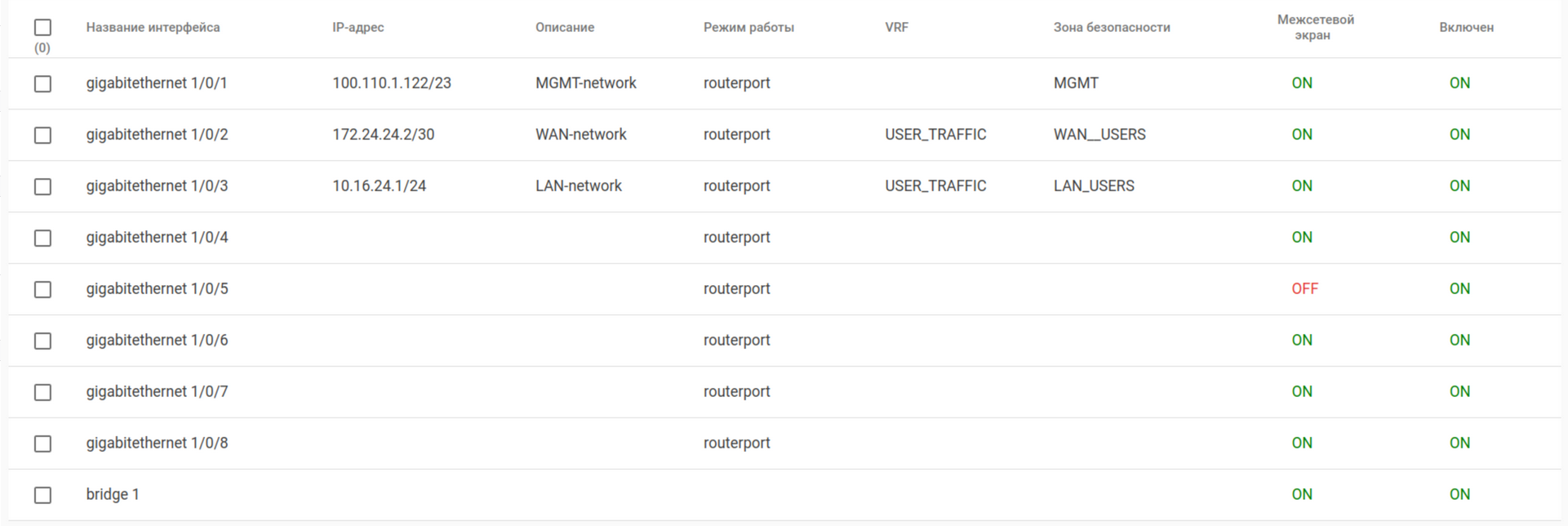 5. Нажмите кнопку "Сохранить": внесенные изменения будут отображены в таблице интерфейсов.