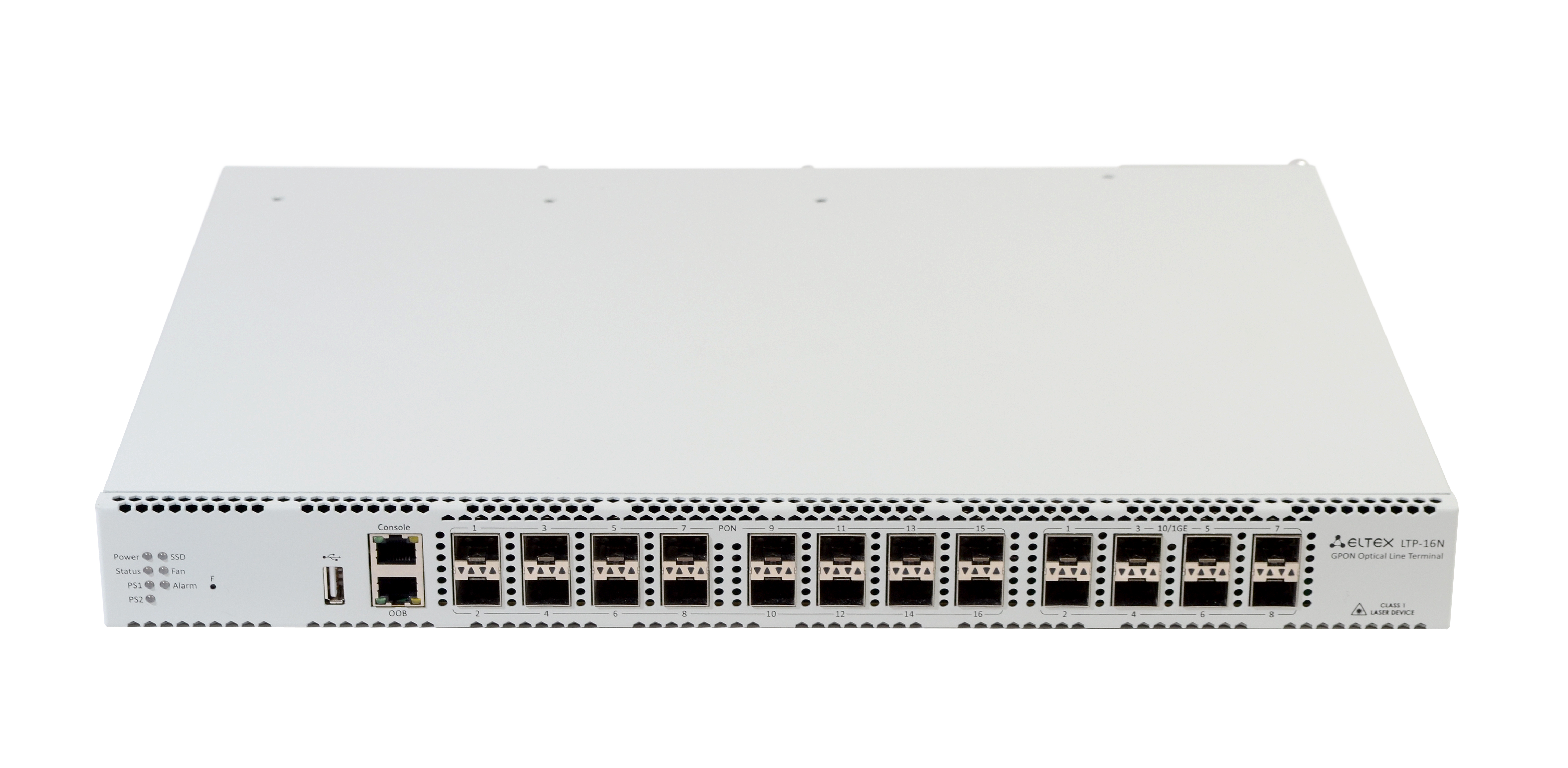 LTP, LTX series OLT are optical line terminals, designed to establish connection with upstream equipment and to provide broadband access across passive optical networks. Ethernet connection is established through Gigabit uplink and 10GE interfaces for LTP-8(16)N(T) and 100GE for LTX-8(16), LTX-8(16) rev.B, LTX-8(16)C. GPON and XGS-PON interfaces are used to connect to optical networks. Each GPON interface allows connection of up to 128 subscriber optical terminals; each XGS-PON interface allows connection of up to 256 subscriber optical terminals through one fibre and supports dynamic bandwidth allocation (DBA).