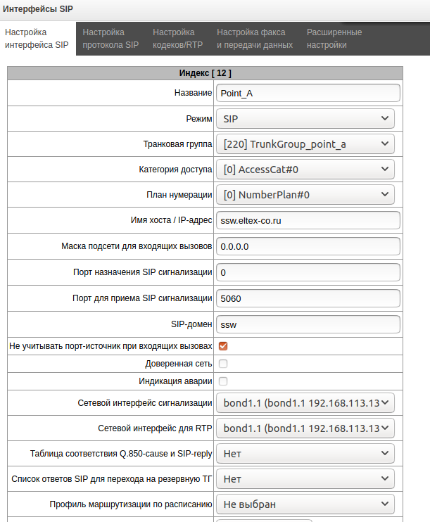 • Выбрать транковую группу "TrunkGroup_point_a";