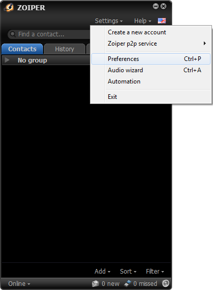 - Запустите программу Zoiper. Внешний вид приложения показан на рисунке 1.