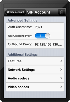 Рисунок 9 — Настройка SIP-аккаунта